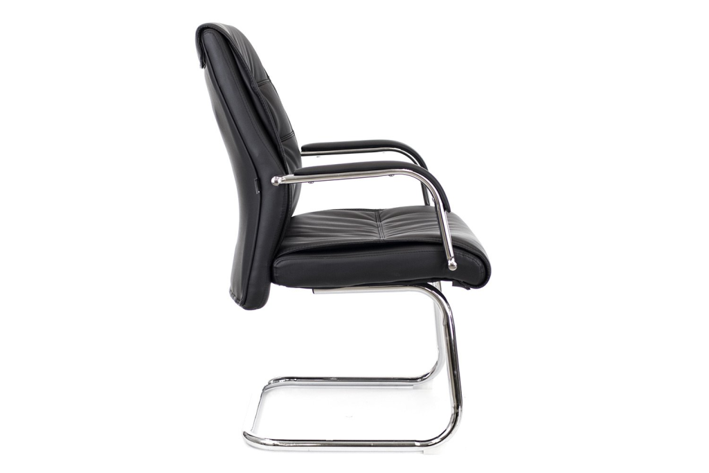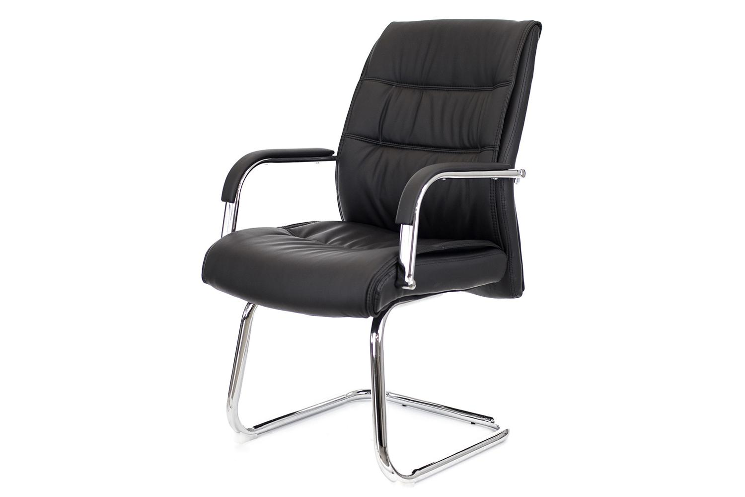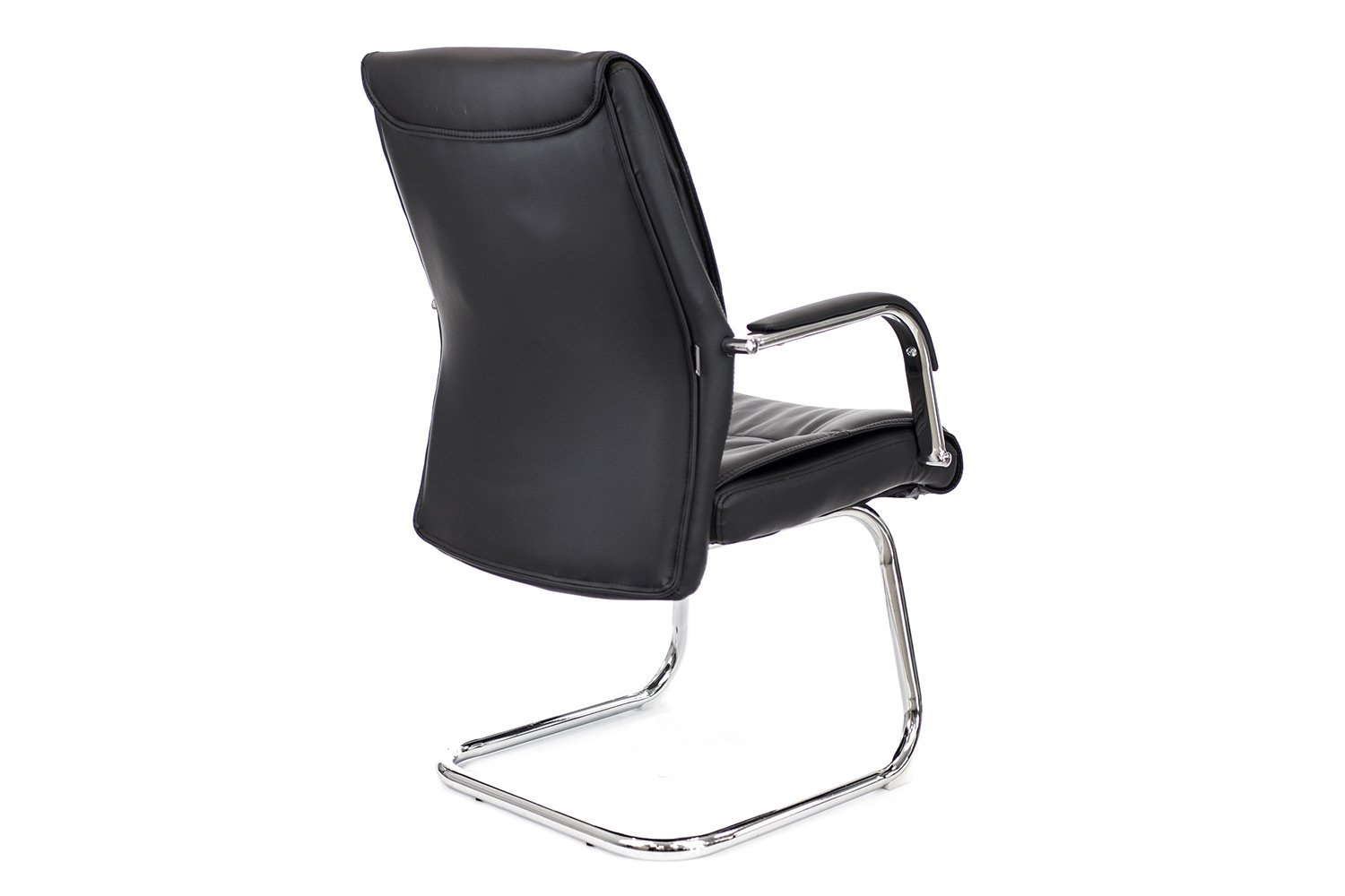 Черный цвет и материал обивки (экокожа) помогают создать солидный и строгий визуальный образ — хорошо подойдёт для офиса или рабочего кабинета дома.